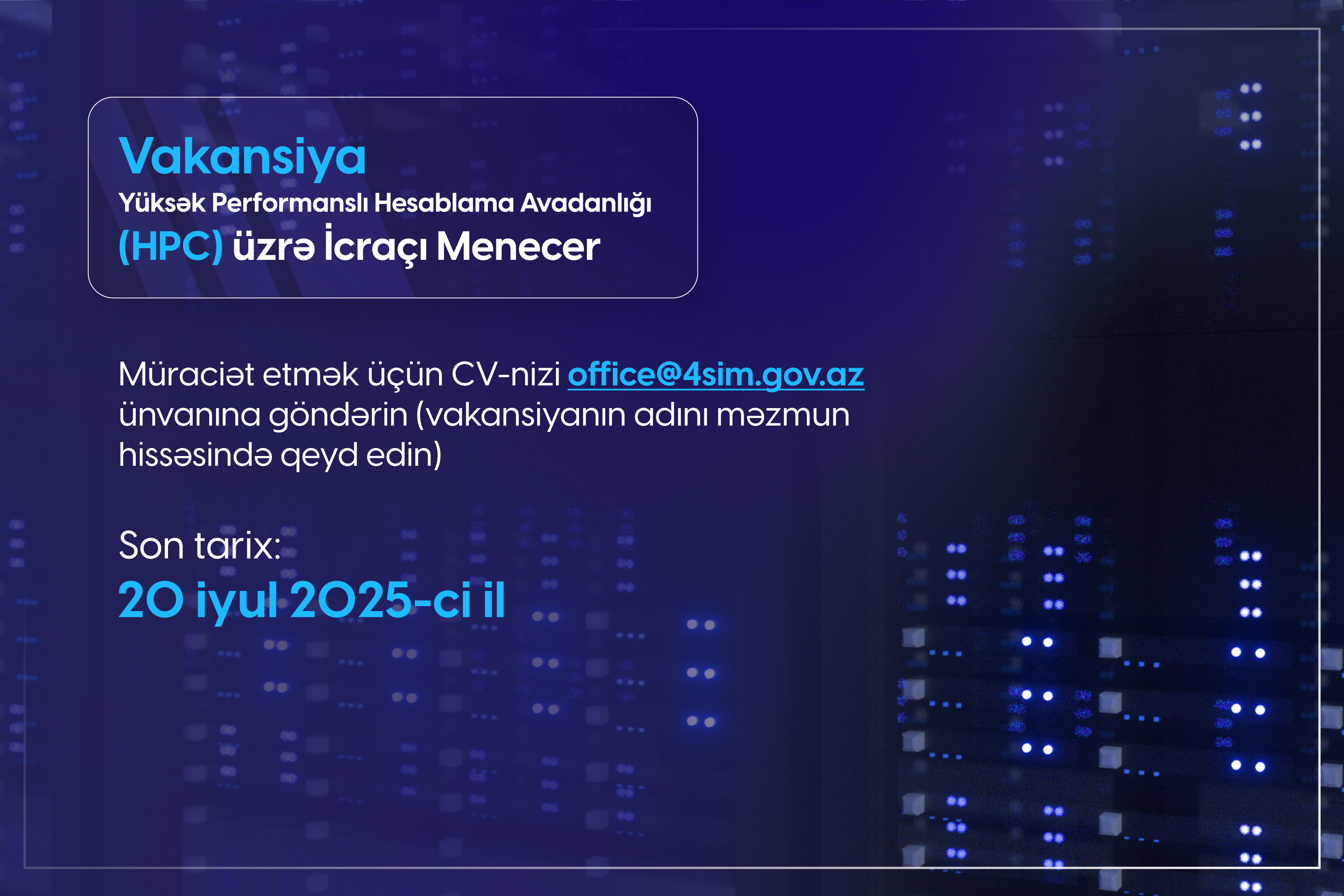 Elan: Yüksək Performanslı Hesablama Avadanlığı (HPC) üzrə texniki menecer