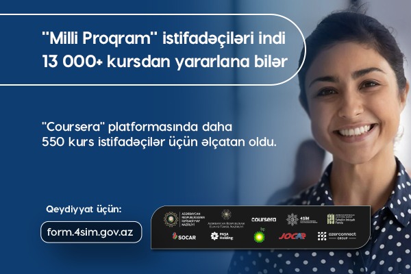 “Milli Proqram” istifadəçiləri “Coursera” platformasında 13 mindən çox kursdan yararlana bilər